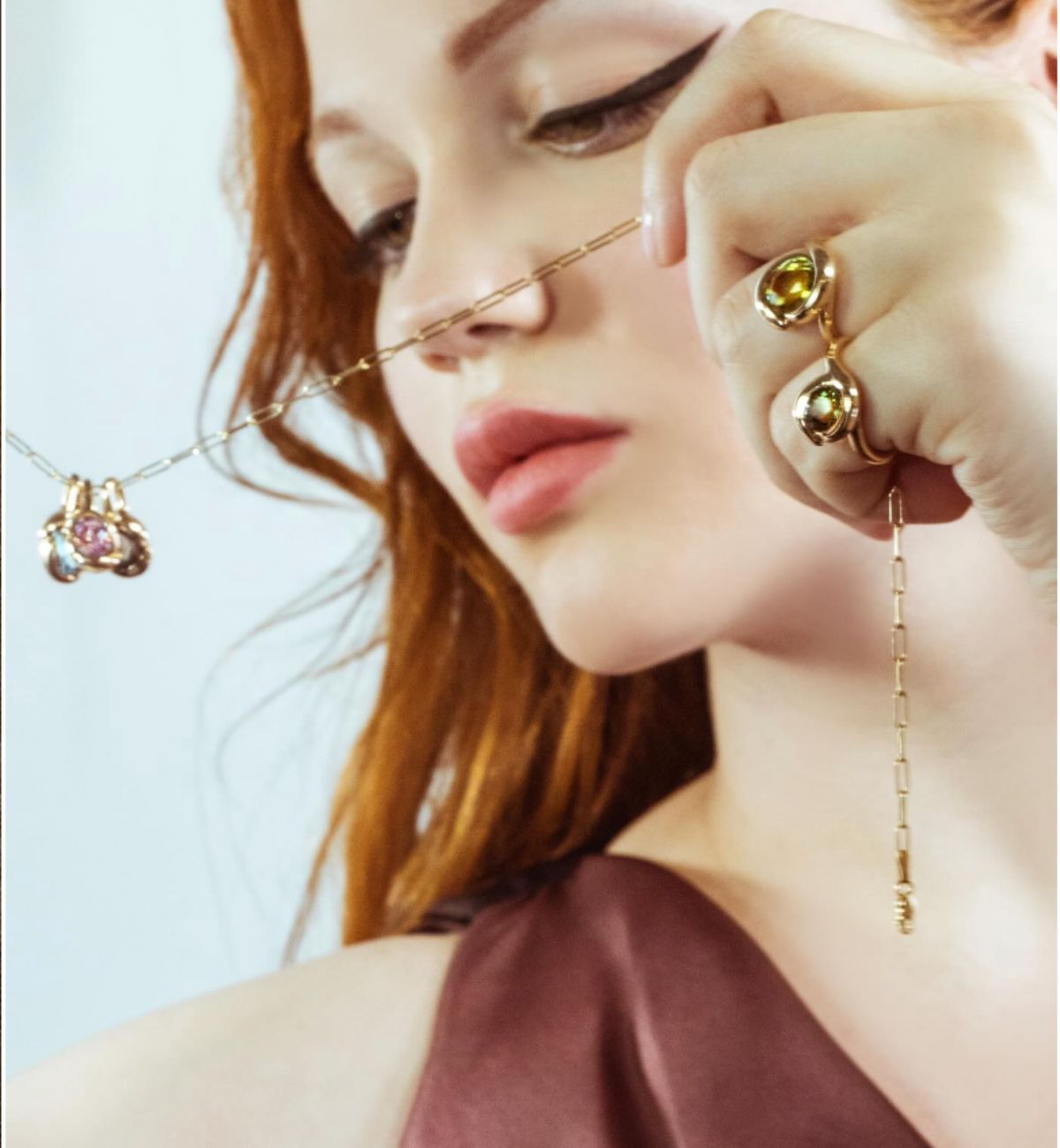 Sustainability and ethics are paramount in what Amanda presents and how she presents it, so her collections are made in small batches in NYC using recycled gold and ethical, unmined, cultivated diamonds.