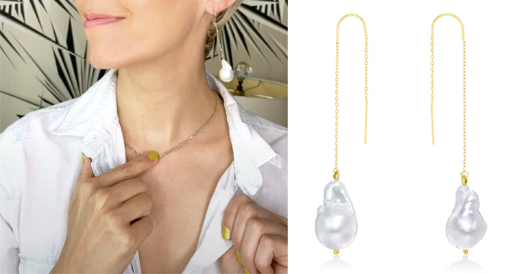 Same Earring Different Outfits - 14K Baroque Pearl Ear Threader Earrings Edition