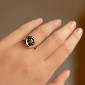 Molten Knot Ring with Grass Green Tourmaline