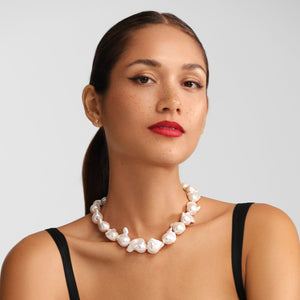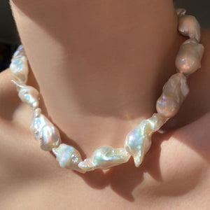 These Baroque pearls are absolute stunners, full of organic curves and natural shapes. This necklace is our "one-and-done" - all you need to make a black or white tee into a full LOOK or to make your prints POP. That being said, our linking ovals clasp allows you to attach a bracelet chain to extend your strand, or a charm lock and/or charms to customize your look and make it YOURS.