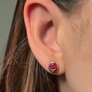 A stunning, modern riff on classic, go-to styles, these Molten solitaire pieces are made of recycled 14k yellow gold and set with gorgeous, ethical rubies. Wear this set as a symbol of resilience, renewal, continuity, and transformation.