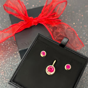 - Stone: 5mm ethical, cultivated ruby
