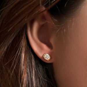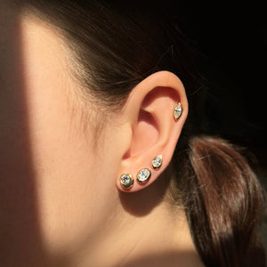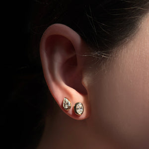 A stunning, modern riff on classic, go-to styles, these Molten solitaire pieces are made of recycled 14k yellow gold and set with gorgeous ethical diamonds. Wear this set as a symbol of resilience, renewal, continuity, and transformation.