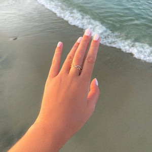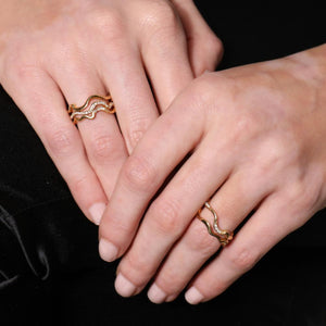 Wear our 'Ripples' as a reminder of your feminine strength and power. We can't get enough of these rings - wear them alone, in a stack, or to modernize an otherwise traditional wedding band or engagement ring. Amanda often sandwiches her platinum band with yellow gold ripples.