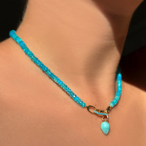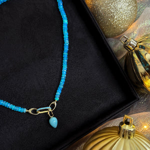 Bundle includes a Bright Blue Faceted Opal Necklace + Small Turquoise Charm Lock + Amazonite Drop Charm.