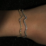 Bundle includes: 1 Pair of Demi-Pavé Ripple Hoops + 1 Full Pavé Ripple Cuff.