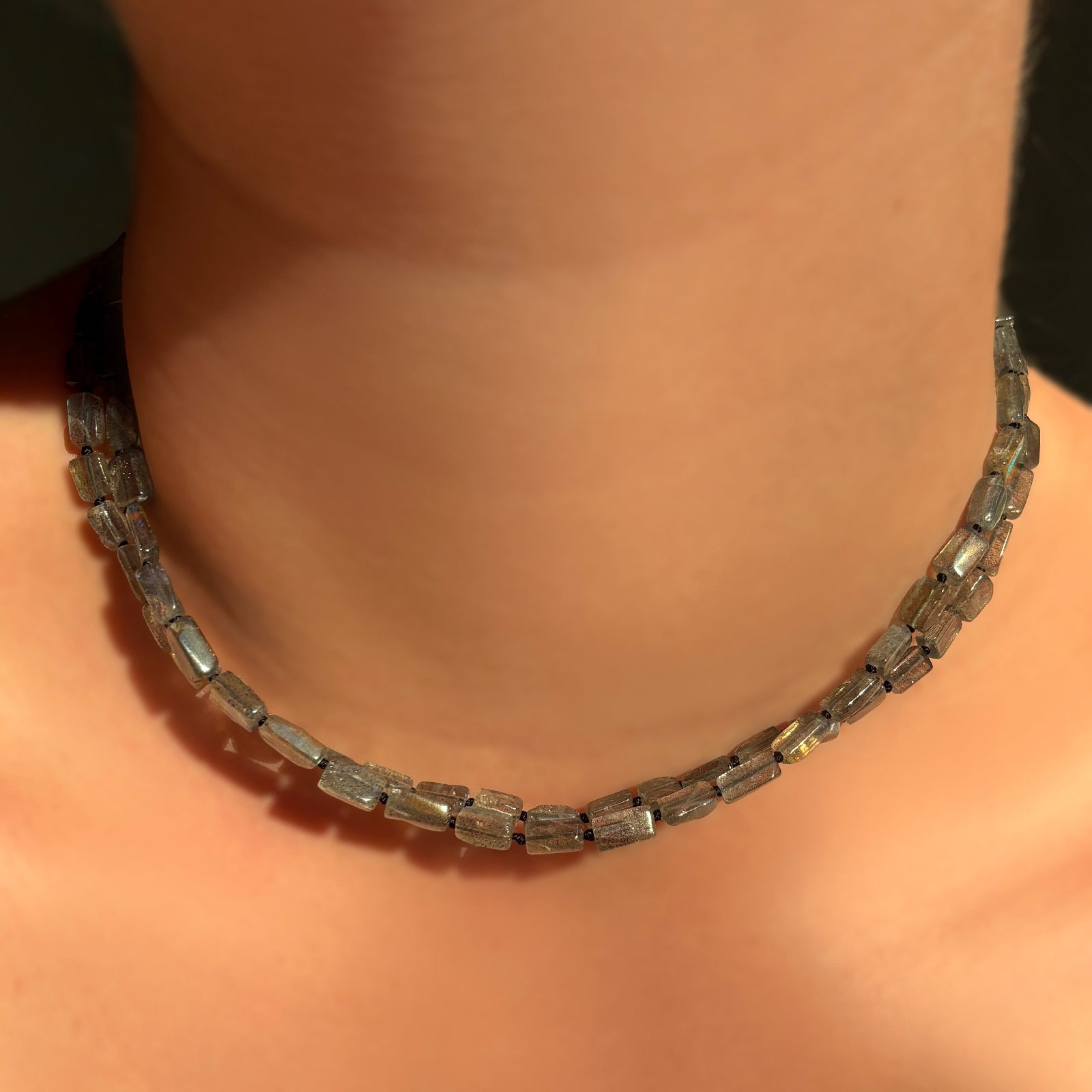 Flat Rectangle Labradorite Necklace