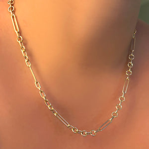 Our new, utterly convertible "must-have", this rounded irregular link chain can be clasped at any length, making it one that will be the workhorse of your collection. Whether for your favorite jumble of charms, or the one piece you can count on to layer perfectly with your other necklaces (or worn solo), you won't know how you lived without this chain!