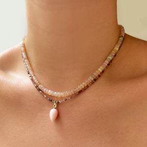 One nickname for pink opal, “The Stone of Spiritual Awakening,” is rooted in its purported connection to the divine. According to Greek mythology, opals formed from the joyful tears Zeus wept after defeating the Titans, and other cultures saw opals as blessings dropped from heaven.