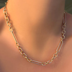 Our new, utterly convertible "must-have", this rounded irregular link chain can be clasped at any length, making it a standout for your collection. Whether worn solo or as the base for an expert neck mess, you won't be disappointed with the addition of this forever-piece to your collection.