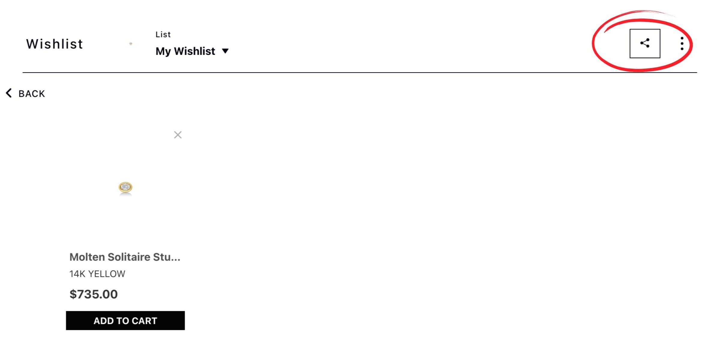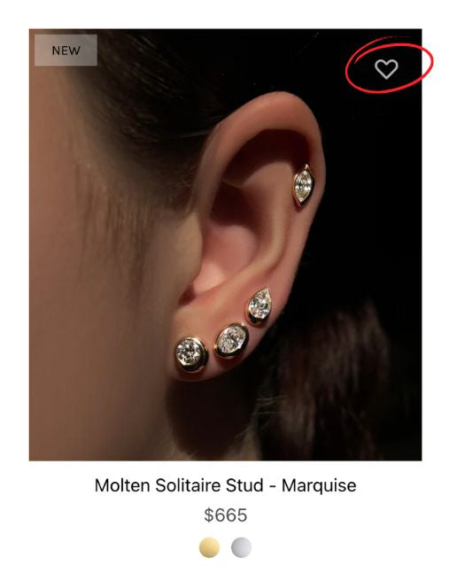 From there, you can either add your saved pieces to your shopping bag, or you can email the list to someone by clicking the connected dots on the upper right of your wishlist.