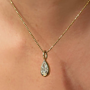 A stunning, modern riff on a classic, go-to style, this Molten solitaire charm is made of recycled 14k yellow gold and set with a gorgeous ethical diamond.
