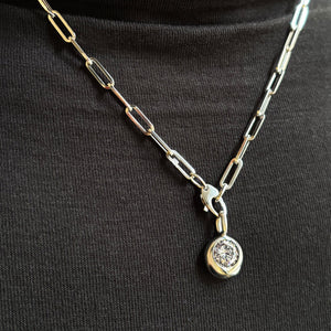 A stunning, modern riff on a classic, go-to style, this Molten solitaire charm is made of recycled 14k yellow gold and set with a gorgeous ethical diamond. Wear this charm as a symbol of resilience, renewal, continuity, and transformation.