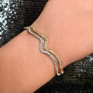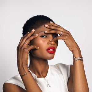 Wear our 'Ripples' as a reminder of your feminine strength and power. This one is elegant on its own, a total statement as a group of three, and of course, as Amanda always wears it, great thrown into a stack of collected bracelets.