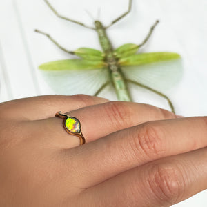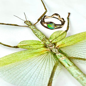 We can't get enough of our ripple rings - wear them alone, in a stack, or to modernize an otherwise traditional wedding band or engagement ring. This extra special ripple ring features a gorgeous, one-of-a-kind, oval Australian opal.