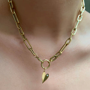 Reminiscent of the sweet paper valentines of yore, this slightly folded gold and gemstone heart is anything but a basic heart charm.