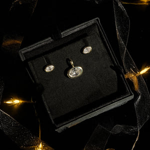 A stunning, modern riff on classic, go-to styles, these Molten solitaire pieces are made of recycled 14k yellow gold and set with gorgeous ethical diamonds. Wear this set as a symbol of resilience, renewal, continuity, and transformation.